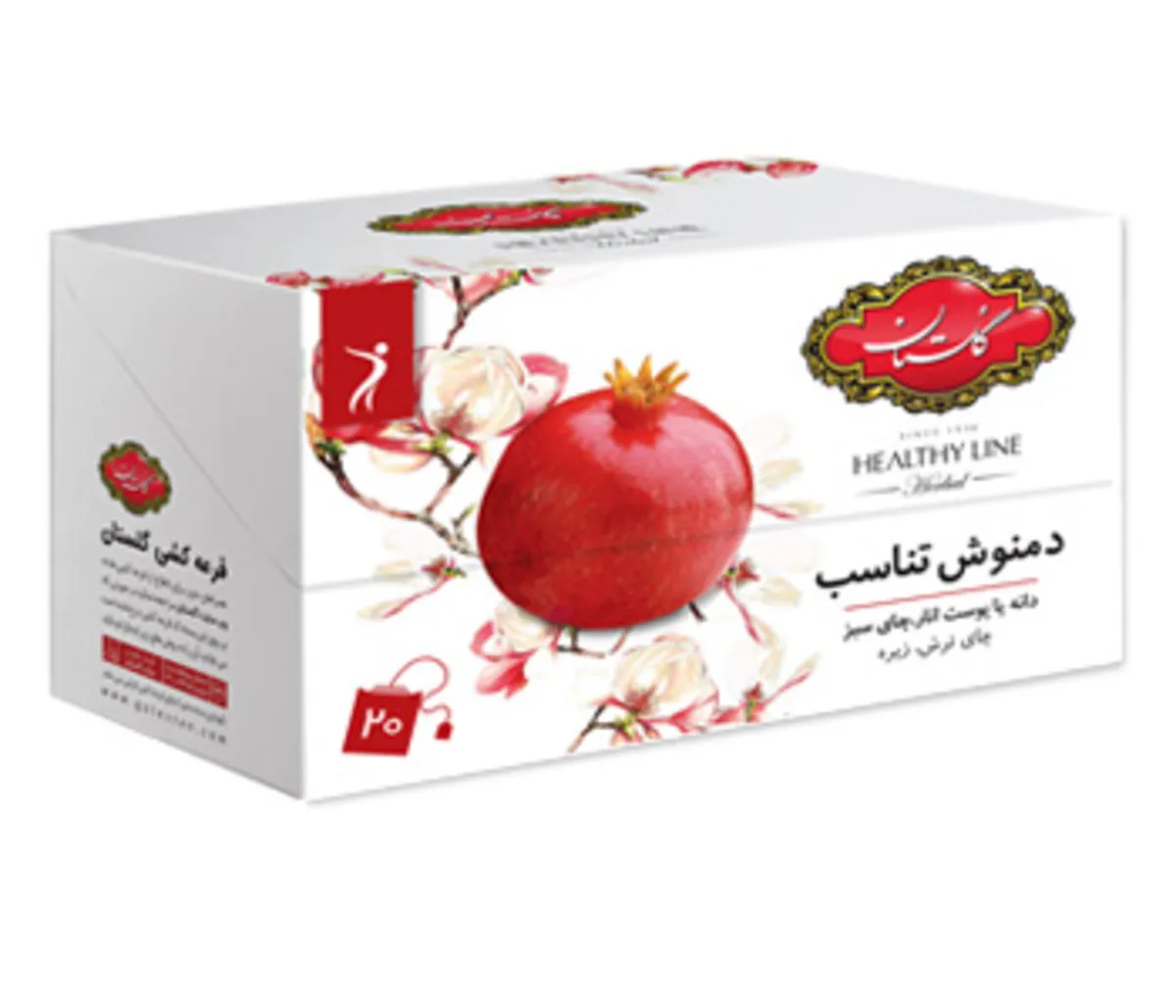 ترکیبات: دانه انار با پوست انار، چای سبز چای ترش، زیره اسید سیتریک، استویا