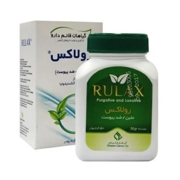 پودر رولاکس حاوی گلیکوزیدهای آنتراکینونی است که پس از هضم هیدرولیز شده و آنتراکینون فعال تولید می کنند. این ماده باعث ایجاد انقباضات و تحریکات در ماهیچه های صاف دیواره روده شده و به این ترتیب موجب دفع سریع مواد غذایی از بدن و درمان فوری یبوست می شود. این فرآورده همچنین دارای مقادیر قابل توجهی اسانس فرار می باشد که بر اندام گوارشی تاثیر گذاشته و اثرات ضد اسپاسمی و ضد نفخ خود را اعمال می کنند.