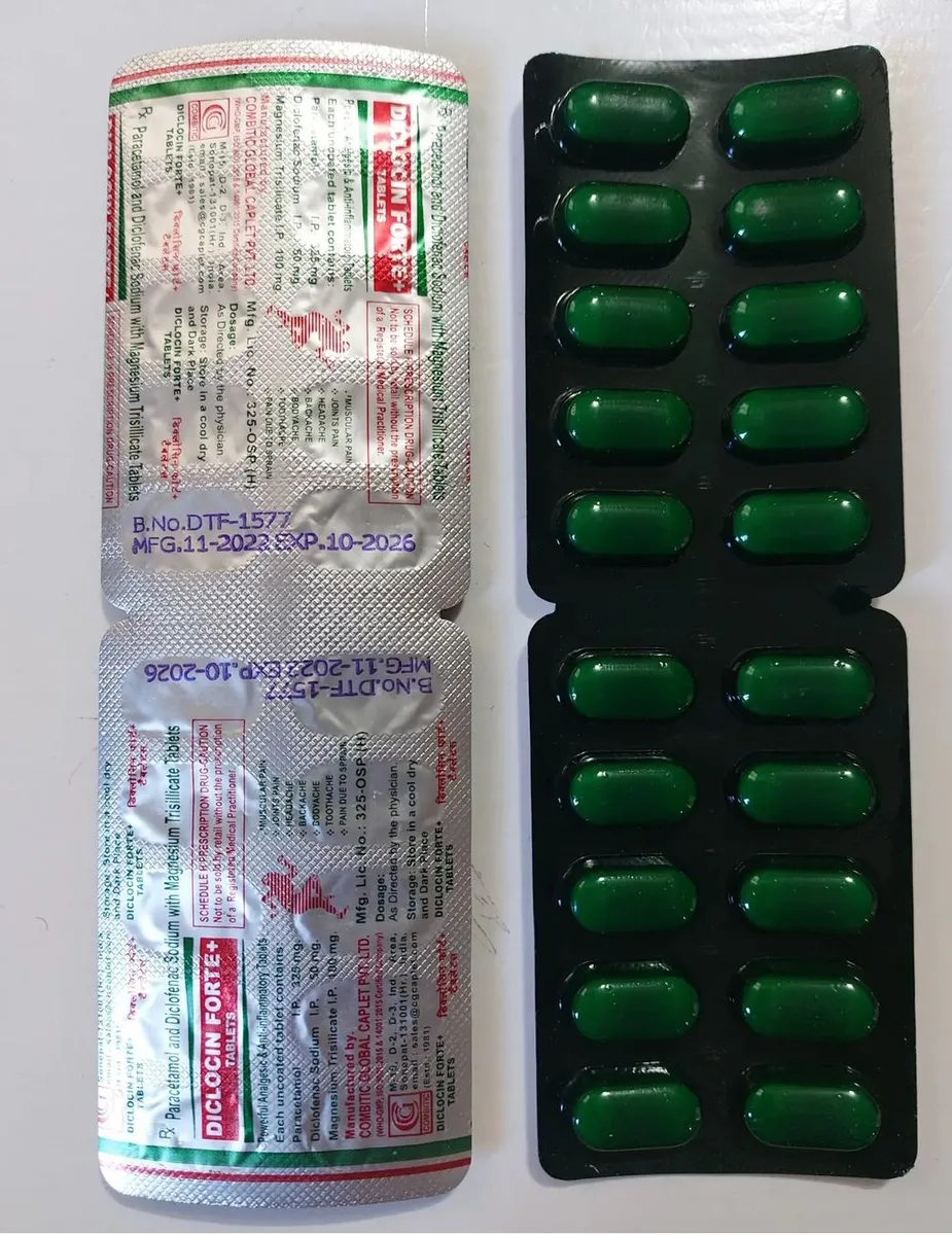 قرص diclocin forte پلاس یک مسکن و ضدالتهاب قوی میباشد که برای انواع دردها بسیار موثر است و در کمترین زمان درد را به شدت کاهش میدهد.diclocin forte ساخت هندوستان بوده ولی به نام های هفت درد پاکستانی یا قرص درد افغانی هم شهرت دارد.
